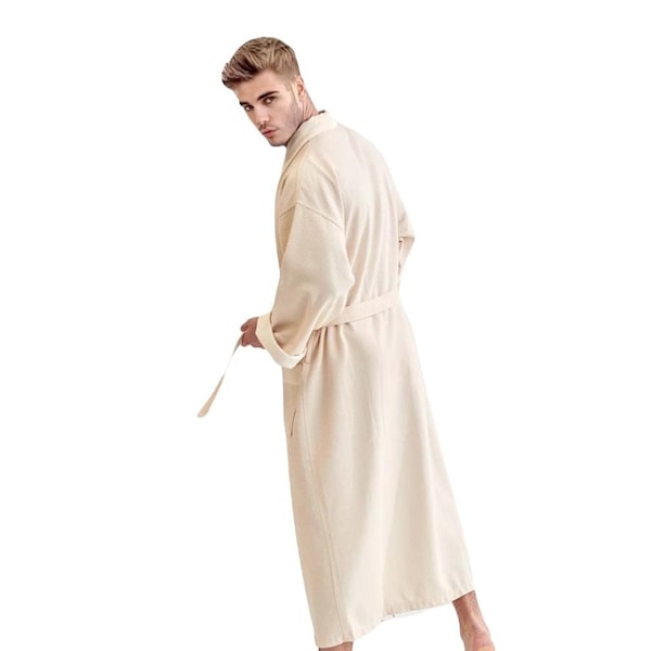 Men's Waffle Weave Creamy Ecru Bathrobe One Size