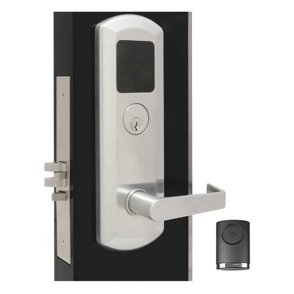Electronic Keyless Lock, Function Programable Function Control, Access Method RFID, Mounting Style Mortise, Lock Material Stainless Steel, Finish Satin Chrome, Series 4000, Handle Type Rigid Lever Quest, Door Thickness 1-3/4 in, Key Override Options Schlage In.C In. 6 Pin Keyway, Hand Field Reversible, Outside Height 8 21/32 in, Outside Width 3 27/64 in, Outside Depth 2 3/4 in, Keypad Material Not Applicable, Power Source (4) AA Batteries, Battery Life 2 yr