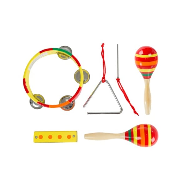 The Kids Percussion Musical Instruments Set by Toy Time is the perfect beginning set of percussion instruments to introduce your toddler to music. This 4-piece set includes two maracas, one tambourine, one harmonica, and one metal triangle, all in bright, vivid colors to sparks your child's imagination and creativity. These instruments help teach tones, volume and rhythm through a wide range of different sounds that your child learns to create.