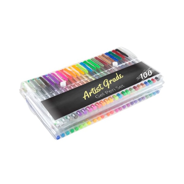 The Toy Time Gel Pen Set is perfect for your next craft or art project! With 100 gel pens in a variety of colors and finishes including classic, fluorescent, metallic, neon, pastel, and glitter, this set has everything you need. The 7-inch pens are smooth flowing and are equipped with fine tips for detailed work. They are perfect for party invites, scrapbooking, coloring books, and more!