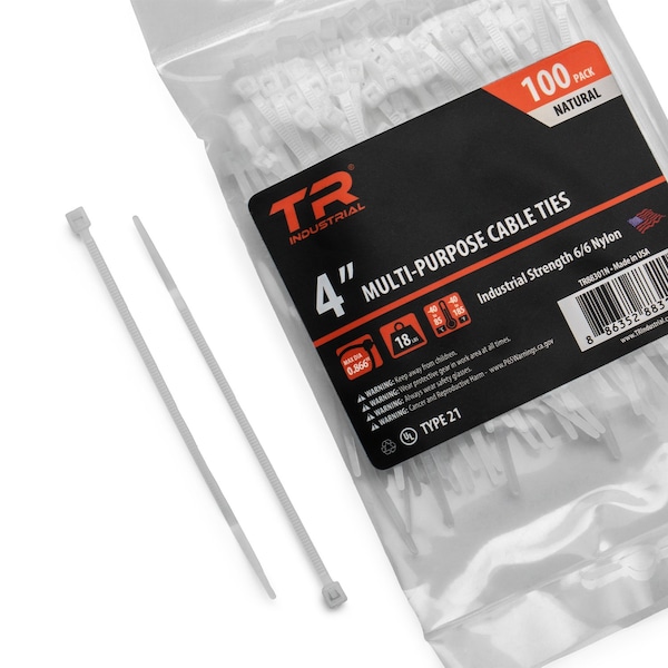 Cable Tie, 4 in L, Natural, Nylon 6/6, 18 lb Strength, 500 PK