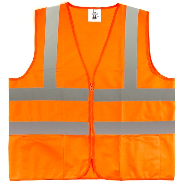 This TR industrial two-tone safety vest is perfect for construction workers, truck drivers, bikers, utility workers where high visibility for extra safety is required. This vest in neon orange features reflective strips on the front and back for ultimate visibility during the day and night. The knit construction is suitable for colder environment while meeting safety requirements.