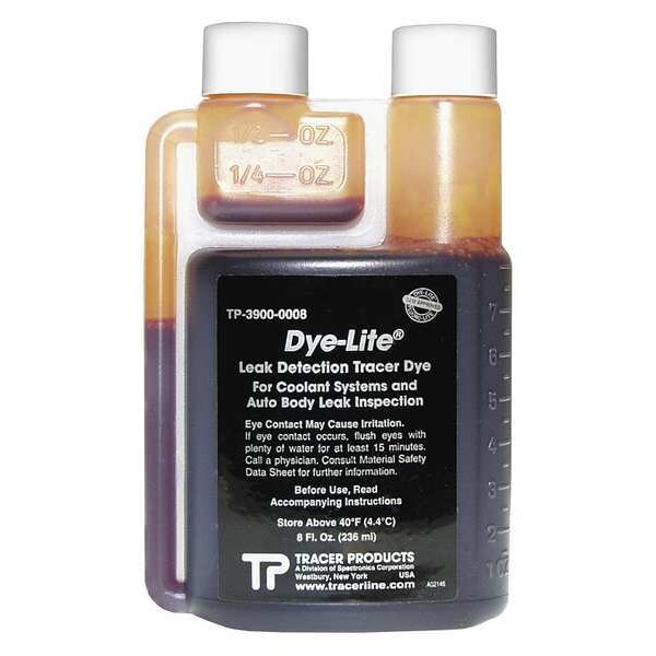 Leak Detection Dye, Compatible Fluid Type Coolant, Series Dye-Lite, Container Type Bottle, Container Size 8 oz, Color Green, Standards Not Applicable, Product Type Leak Detection Dye, Boiling Point 212 Degrees F, Features Isolate and Identify Multiple Leaks in Multiple Vehicle Systems, Fluorescent Fluorescent, Maximum pH Level 9, Product Form Liquid, Recommended Dilution 1 oz Per Vehicle (6 gal), Specific Gravity 1.03