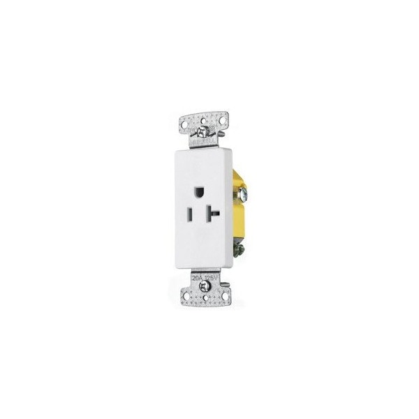 125 V, 20 A, 2-Pole, 3-Wire, NEMA 5-20R, White, Thermoplastic, Side Wiring, Residential, Self-Grounding, Standard, Decorator Single, Straight Blade Receptacle