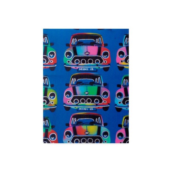 This ready to hang, gallery-wrapped art piece features a classical car painted over a blue scene.