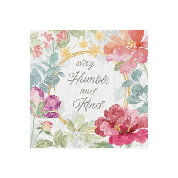 This ready to hang, gallery-wrapped art piece features pink and purple flowers around an inspirational phrase.