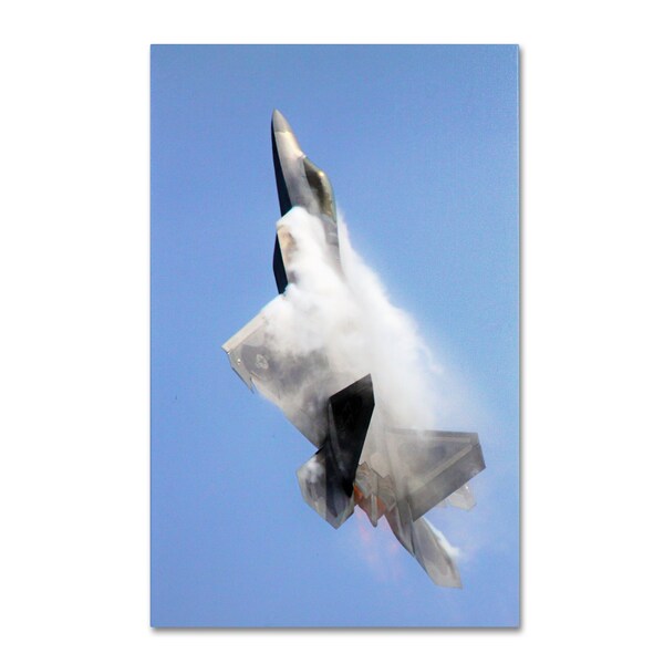 This ready to hang, gallery-wrapped art piece features a fighter jet breaking the sound barrier.