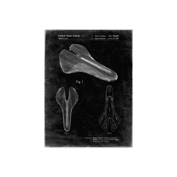 This ready to hang, gallery-wrapped art piece features a patent poster of a bicycle seat.