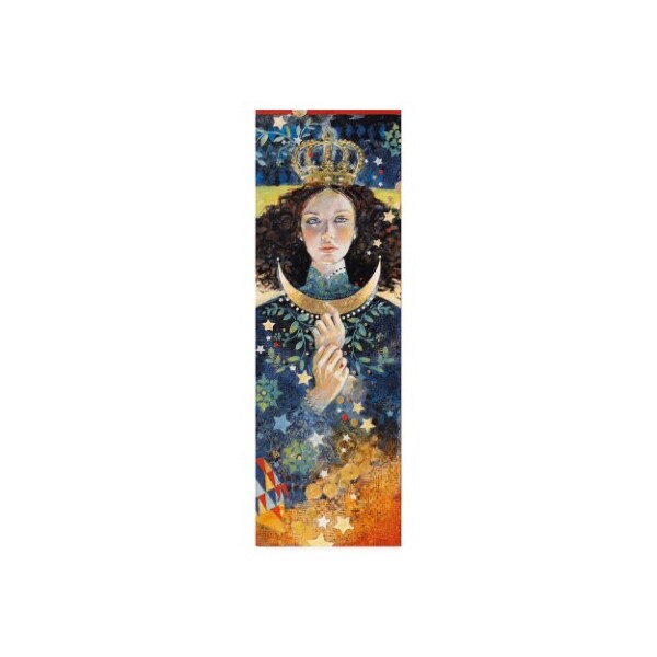 This ready to hang, gallery-wrapped art piece features a woman with a crown and offering with a starry background.