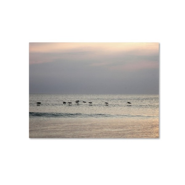 This ready to hang, gallery-wrapped art piece features birds flying over water.