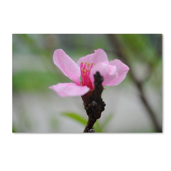 This ready to hang, gallery-wrapped art piece features a pink flower.