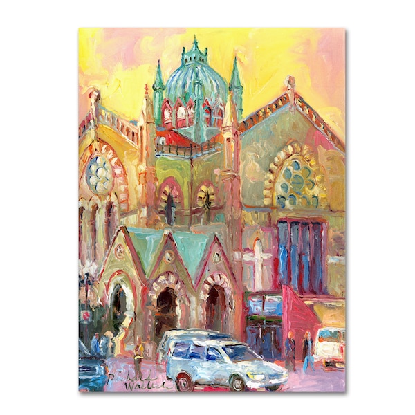 This ready to hang, gallery-wrapped art piece features a cathedral.