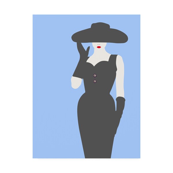 This ready to hang, gallery-wrapped art piece features a woman in black over a blue background.
