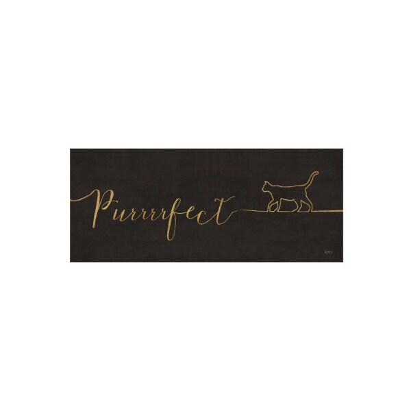 This ready to hang, gallery-wrapped art piece features gold cursive text next to line art of a cat.