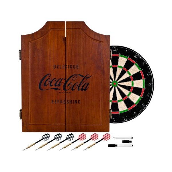 Coca Cola Wood Dart Cabinet Set - Engraved Logo