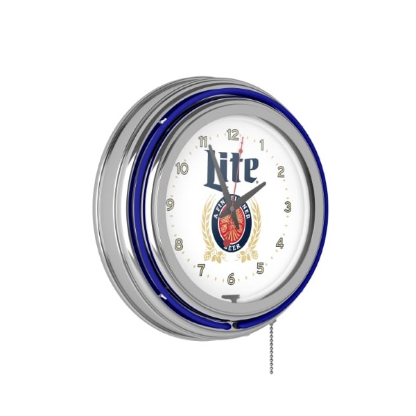 Miller Lite Chrome Double Rung Neon Clock - Retro Design (Discontinued)