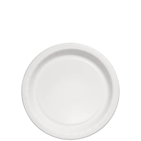 The Bare Eco-Forward Paper Plate is an 8.5-inch medium weight plate designed for everyday use. It features a white color and is made from eco-friendly materials that support sustainability efforts. This disposable plate, available in a pack of 500, is suitable for serving a variety of foods at casual gatherings, picnics, or parties. Its size and weight provide durability while maintaining convenience and ease of disposal. The plate is produced by Solo Cup, known for quality disposable tableware. Its medium weight construction ensures it can handle typical meal portions without bending or leaking.