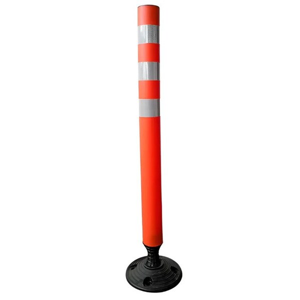 This high-performance Flexible delineator post is designed for maximum visibility, durability, and safety in high-traffic areas. Engineered with a rugged injection-molded TPU base and an extruded LDPE post, it withstands harsh conditions and repeated impacts. The two-piece construction interlocks to form a single inseparable unit, resilient even under the weight of heavy trucks. Featuring a 360° reflective surface with three 3-inch reflective stripes, this post ensures outstanding visibility from any angle, day or night. The proven reactive spring assembly allows the post to rebound fully from impacts in any direction, maintaining long-term performance and reliability.