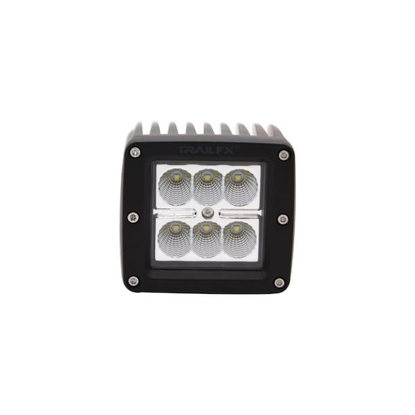 TrailFX 3X2CF- TrailFX provides LED light solutions to perform for work play and everyday life. Quality materials and workmanship go into each of our applications including use of Cree and OSRAM LED's providing our lights with 30 000+ working hours. Buy once and with confidence knowing all TrailFX LED light solutions are covered by a Limited Lifetime Warranty.- Attributes: Ampere Rating At 12 Volts: 1.15 Amp; Ampere Rating At 24 Volts: 0.61 Amp; Diameter: Not Applicable; Height: 2.95 Inch; Housing Color: Black; Housing Finish: Powder Coated; Housing Material: Die-Cast Aluminum; Includes Mounting Hardware: Yes; Includes Wiring Harness: Yes; Length: 3.14 Inch; Lens Material: Polycarbonate; Light Color: Clear; Light Output: 1620 Raw Lumens/ 940 Effective Lumens; Light Type: 90 Degree Flood Beam; Mounting Length: 3.14 Inch; Mounting Style: Bottom Mounting; Number Of LED's: 6; Prop 65 - Short Label: WARNING: Cancer and Reproductive Harm - www.p65warnings.ca.gov; Prop 65 Y/N: Y; Quantity: Single; Shape: Cube; Title: Driving/ Fog Light - LED; Voltage Rating: 10 To 30 Volt; Wattage: 18 Watt; Width: 3.22 Inch; Features: Higher Effective Lumens Fully Illuminates The Night Sky; Die-Cast Aluminum Housing For Durability And Long Life; 90 Degree Flood Beam Creates A Wider Angle Of Light To See Objects Both Up Close And To The Side Of The Trail; IP67 Rating For Dust Sand And Dirt Protection Along With A High Water Resistance To Keep The Lights At 100 Percent Functional Capacity Regardless Of The Outside Elements; 30 000+ Hours Of Working Life Assures The Light Will Operate For Work Play And Everyday Life; Lower Power Consumption Allows Extra System Wattage For Additional Accessories; Universal Fitment