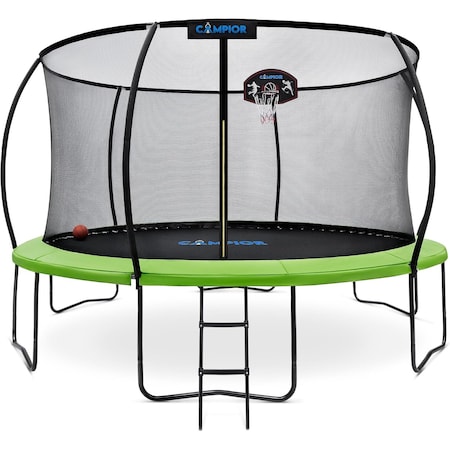 12ft Pumpkin Trampoline with Luxury Ladder, Basketball Hoop, Inner Enclosure, Safe, Durable Fun