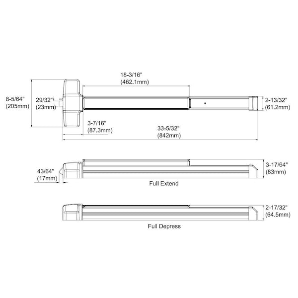 900 Series UL Listed Aluminum 36 in. Grade 1 Heavy Duty Mortise Panic Rim Surface Exit Device (Discontinued)