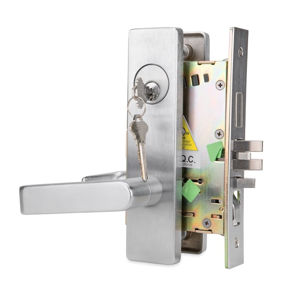 DXML Series Brushed Chrome Grade 1 Classroom Mortise Lock Door Handle with Escutcheon Left-Handed Lever