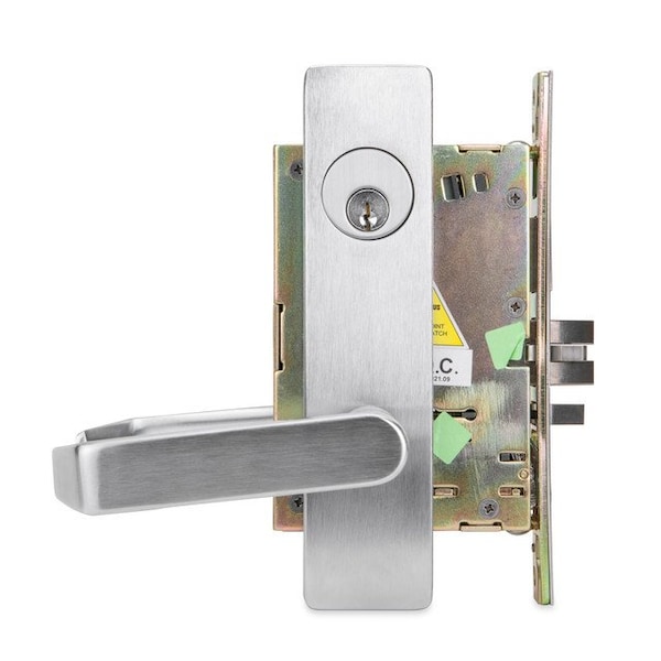 The DXML mortise lockset is designed for heavy-duty commercial and industrial applications. This series meets ADA handicap compliance and meets a 3-hour fire rating. Featuring a specified left-handed or right-handed latch bolt, these mortise locks provide amazing security for any mortise prepped door. This hardware includes an ADA lever along with an ADA approved strike. This lockset comes in a chrome finish to fit in with any industrial or commercial aesthetic.
