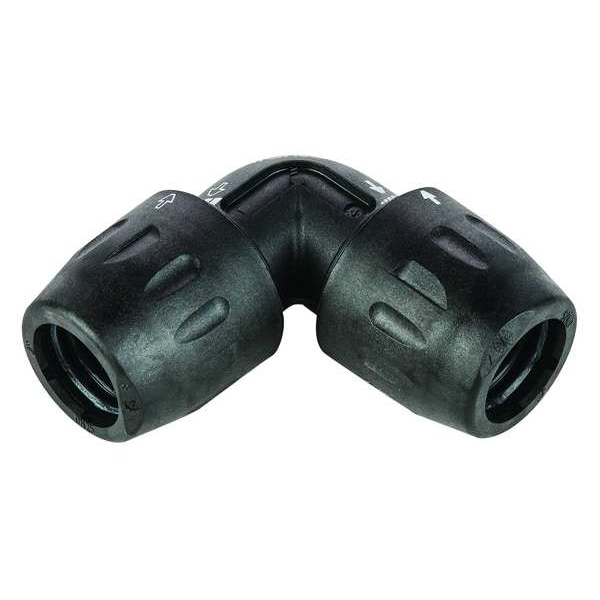 Push-Fit Elbow Fitting, Application Vacuum, Fitting Side A Connection Type Push-to-Connect, Fitting Side B Connection Type Push-to-Connect, Fitting Side A Tube Outer Diameter 1/2 in, Fitting Side B Tube Outer Diameter 1/2 in, Fitting Material Polyamide, Fitting Thread Size Not Applicable, Material Grade Not Applicable, Color Black, Includes Pre-Applied Thread Sealant Not Applicable, Maximum Operating Pressure 232 psi, Maximum Operating Temperature 140 Degrees F, Overall Length 2 5/16 in