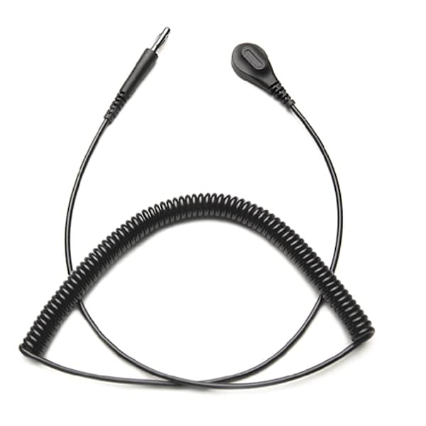 The Transforming Technologies CC9000 Series Premium Coil Cord has a 2.5 mm polyurethane coil insulation that offers excellent coil memory. A unique, flat-face snap allows for a universally solid connection to standard wrist bands. A shorter, swivel type banana jack increases coil life, prevents cord tangles and fits most bench grounds. Equipped with a 1 meg ohm resistor.