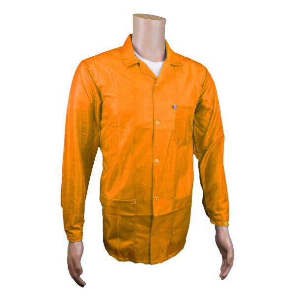 ESD Jacket, 3/4ths Length, Lapel Collar, Snap Cuff, Small, Orange
