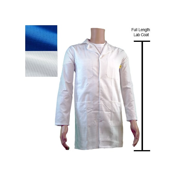 ESD Jacket, Full Length, Lapel Collar, Snap Cuff, Small, Light Blue