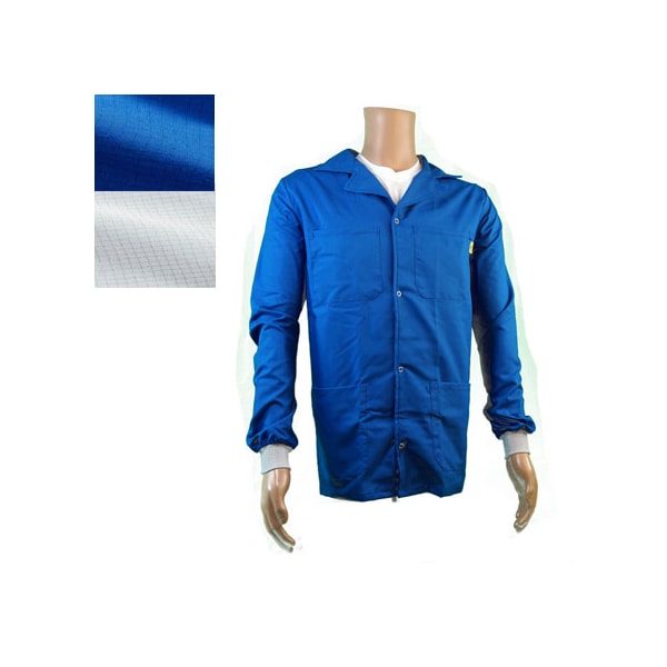 ESD Jacket, Waist Length, Lapel Collar, Knit Cuff, Medium, Light Blue