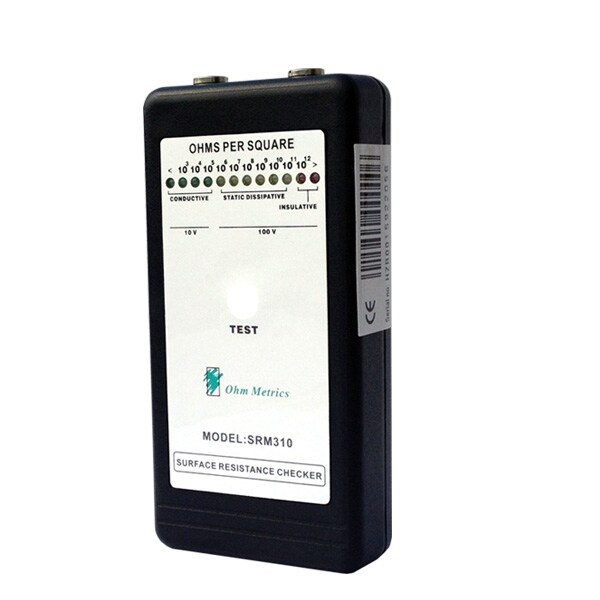 This SRM 320 uses parallel electrodes and concentric rings to accurately measure RTT, RTG, or resistivity for periodic verification, factory audits or test lab evaluation of product. This meter is designed to verify incoming materials such as floor mats, table mats, bins and shelving in static controlled areas. Work surfaces, bags, wrist straps, footwear, packaging materials, garments, and ESD chairs can also be tested with the device. The SRM320 meets periodic test requirements per Com-pliance Verification ESD TR53 and conforms to ANSI/EOS/ESD (S4.1, S7.1, S12.1, S2.1).
