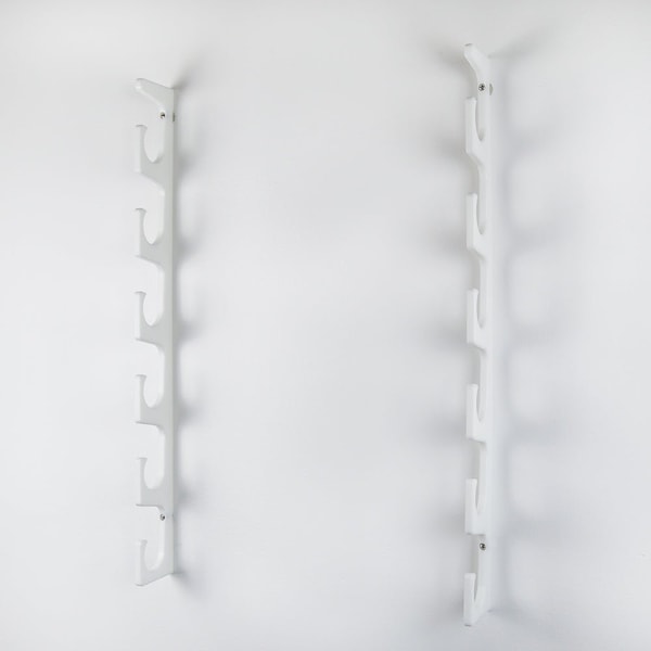 The TRAPSKI Wall Fishing Rod Rack was designed by Angler's for Angler's! Whether you fish the deep sea or your local honey hole, keeping your gear organized and protected is important. It is made with Marine Grade HDPE and comes with Stainless Steel hardware so you can mount it on a wall or ceiling in your garage, shed, storage area, boat or outside if you want! The simple design can handle Deep Sea, Inshore or Freshwater rods with or without reels! The simple design can handle Deep Sea, Inshore or Freshwater rods or combos! No metal to rust or rubber padding or covering to come off when sliding rods into the rack. Our design offers the MOST flexibility in mounting and install applications! Wide 1.5 inch holes with arch to support the gear with a drilled hole on each end to add a bungee if you desire to keep the nice equipment secured when on a ceiling, wall or especially in a boat. Our CNC machine delivers precise, accurate and consistent products with a 3- year warranty. Available in 1 or 2 Packs.