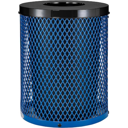 Outdoor Diamond Steel Trash Can With Flat Lid, 36 Gallon, Blue
