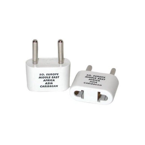 TravelLite, Adapter Plug, With 2 Long Thin Pins For Southern Europe, Middle East, Parts Of Africa, Asia Parts Of The Caribbean