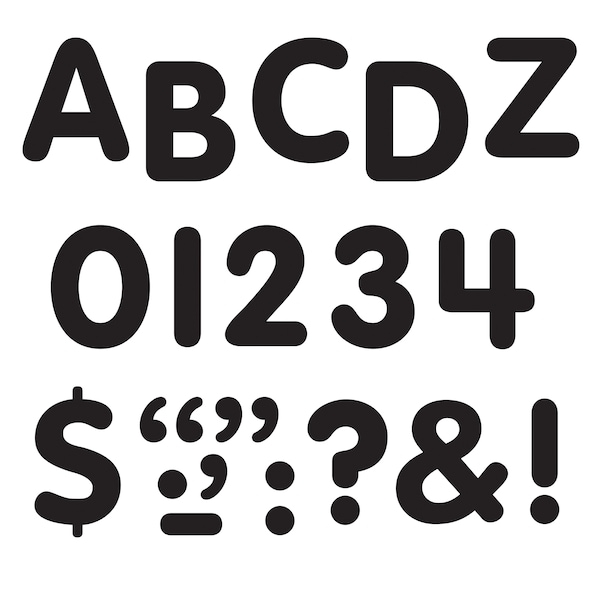 Create quick, easy displays with these handy, self-adhesive letters. Or personalize folders, notebooks, and storage containers. Coated for extra durability and value. Each pack includes 184 uppercase letters, 50 numbers, and 90 punctuation marks. Sold as 6 packs.