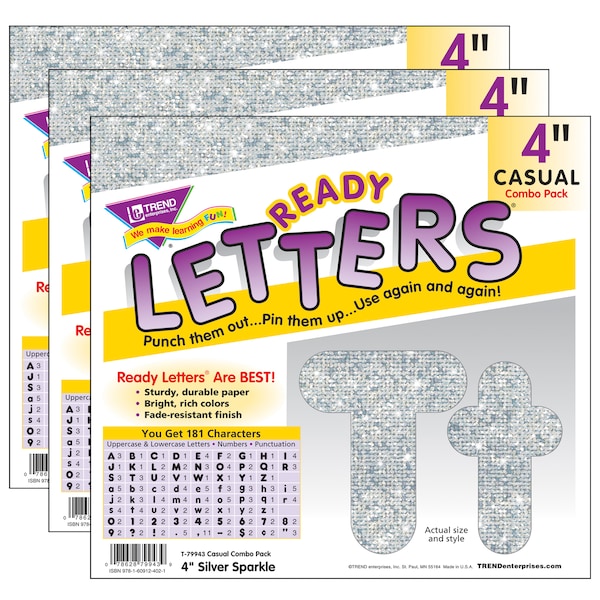 Silver Sparkle 4 Casual Combo Ready Letters, PK3