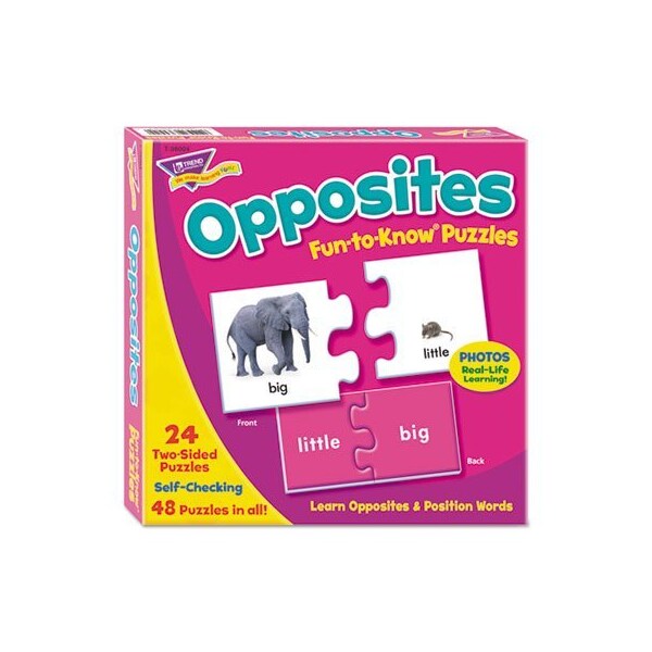 Durable interlocking pieces with colorful photographs for easy recognition and retention. Self-checking design. Opposites. Games/Manipulatives Type: Puzzle; Age Recommendation: Ages 3 and Up.