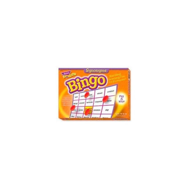 Trend synonyms bingo game, age 10 & up, 3 to 36 players, 1 box synonyms bingo game offers active learning that delivers results. Players build vocabulary skills by learning and using synonyms for 37 common words. Reinforces spelling and reading skills. Traditional 5 x 5 grid format can be played six ways to meet the needs of learners of all skill levels. Ideal for large or small group use. Set includes 36 playing cards, more than 700 chips, caller's mat and cards, and a sturdy storage box. Ideal for fourth-grade to eighth-grade (ages 9 to 13).