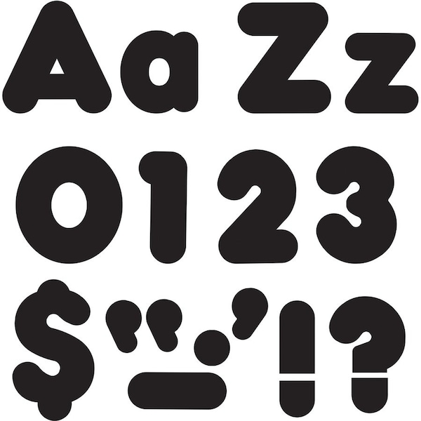 Convenient, reusable and easy to use, these vibrant letters are great for student work displays, bulletin boards, signs, banners, news boards, learning activities, labeling and much more. Durable, 4" letters and symbols offer a fade-resistant color for long-lasting use. Set includes 50 uppercase letters, 82 lowercase letters, 20 numerals from 0 to 9, 29 punctuation marks, and one blank sheet.