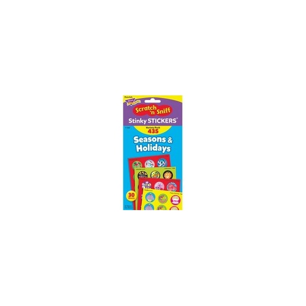 Variety of Stinky Stickers includes season and holiday themes. Each sticker offers a scratch-and-sniff surface that delivers a burst of fragrance. Use as rewards, incentives and collectibles. Stickers are acid-free, nontoxic and safe for use on photos. Ideal for teaching students in kindergarten to third grade (ages 5 to 8).