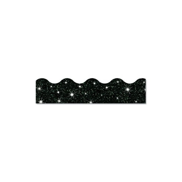 Sparkling trims decorate classrooms and enhance learning environments. Pre-cut, scalloped borders add a touch of dazzling color. Durable trimmers are reusable. Coordinate with Sparkle Ready Letters, sold separately, to complete the theme. Colors: Black Sparkle; Theme: Sparkles; Height: 2.75in; Length: 32 ft.