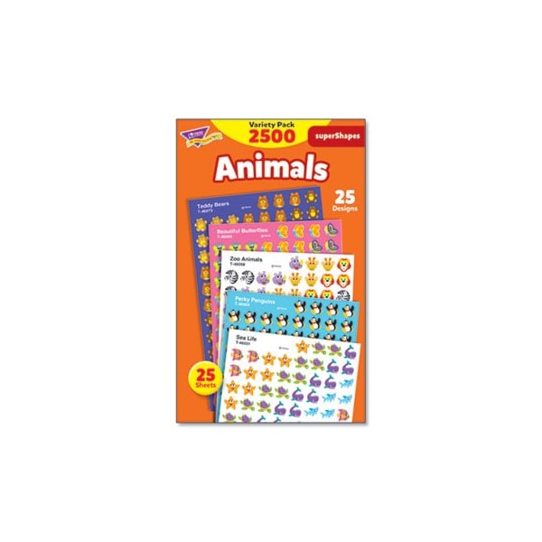 TREND, SUPERSPOTS AND SUPERSHAPES STICKER PACKS, ANIMAL ANTICS, ASSORTED, 2500PK