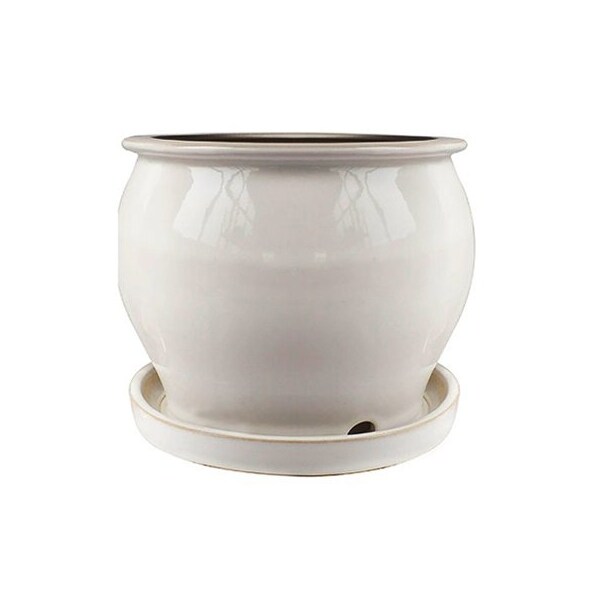 Trendspot, 4, Cream White, Studio Pot, Glazed Ceramic With Decorative Brim, Built In Drainage Holes Attached Saucer, For Indoors Or Outdoors, Dimensions 425 x 425 x 374