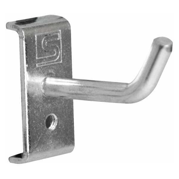 Single Rod Pegboard Hook, Number of Hooks 5, Overall Height 1 1/4 in, Overall Length 1 7/8 in, Overall Width 1 31/32 in, 1 in For Pegboard Hole Spacing, For Pegboard Hole Size 3/8 in, Surface, Screw-In Locking System, Square For Pegboard Hole Shape, Steel, Silver, Zinc-Plated, Single Hook Accessory Type, Black Holding Clip, Bolts, Package Quantity 5