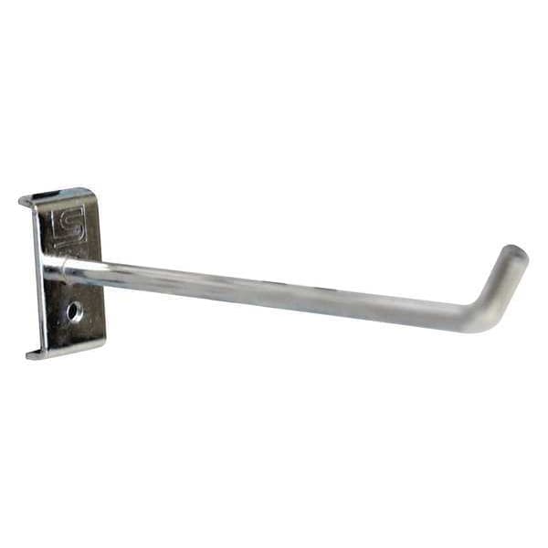 Single Rod Pegboard Hook, Number of Hooks 5, Overall Height 1 3/4 in, Overall Length 7 7/8 in, Overall Width 5 29/32 in, 1 in For Pegboard Hole Spacing, For Pegboard Hole Size 3/8 in, Surface, Screw-In Locking System, Square For Pegboard Hole Shape, Steel, Silver, Zinc-Plated, Single Hook Accessory Type, Black Holding Clip, Bolts, Package Quantity 5