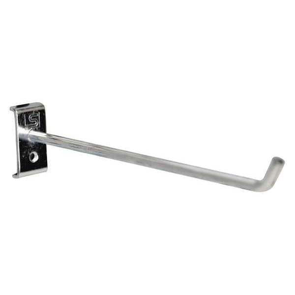 Single Rod Pegboard Hook, Number of Hooks 5, Overall Height 1 3/4 in, Overall Length 5 7/8 in, Overall Width 5 29/32 in, 1 in For Pegboard Hole Spacing, For Pegboard Hole Size 3/8 in, Surface, Screw-In Locking System, Square For Pegboard Hole Shape, Steel, Silver, Zinc-Plated, Single Hook Accessory Type, Black Holding Clip, Bolts, Package Quantity 5
