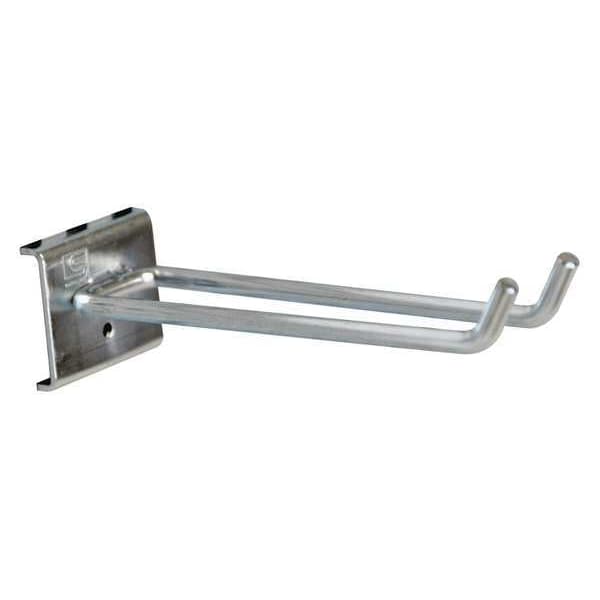 Double Rod Pegboard Hook, Number of Hooks 5, Overall Height 1 3/4 in, Overall Length 5 7/8 in, Overall Width 5 29/32 in, 1 in For Pegboard Hole Spacing, For Pegboard Hole Size 3/8 in, Surface, Screw-In Locking System, Square For Pegboard Hole Shape, Steel, Silver, Zinc-Plated, Double Rod Hook Accessory Type, Black Holding Clip, Bolts, Package Quantity 5