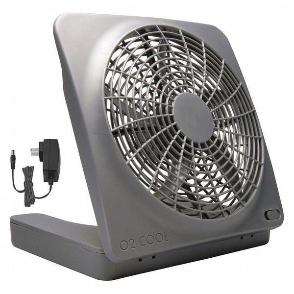 Compact Fan, Overall Style - Fans Compact, Fan Mounting Location Floor, Table, Number of Speeds 2, Non-Oscillating, Fan Cord Length 3 ft, Fan Power Source Battery Operated, 5.9 W Watts, 825/1025 RPM RPM, Number of Blades 5, 0.65 A Amps, Height 11 3/4 in, Width 12 in, Bearing Type Sleeve, Blade Material Plastic, ABS, 0, Gray